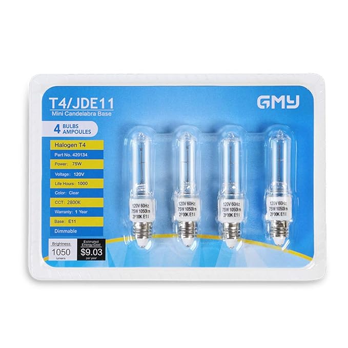 ๐ก GMY JDE11 120V 75W T4 Mini Candelabra Bulb 1050lm 2800K Clear Dimmable JD E11 Halogen 75W for $8.91 (15% off) Jan 14 Written By flipmodearmyceo GMY JDE11 120V 75W T4 Mini Candelabra Bulb 1050lm 2800K Clear Dimmable JD E11 Halogen 75W Bulbs 4Pack$8.91 SHIPPED!(15% off) flipmodearmyceo