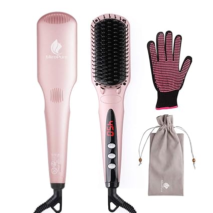Enhanced Hair Straightener Heat Brush by MiroPure, 2-in-1 Ceramic Ionic Straightening Brush, Hot Comb with Anti-Scald Feature, Auto Temperature Lock & Auto-Off Function (Pink) for $49.99