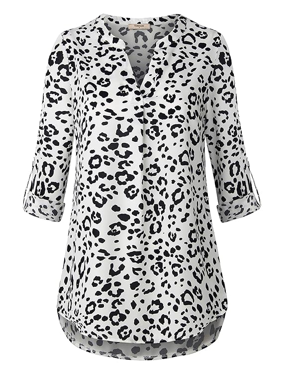 📡 ECOWISH Womens V Neck Leopard Casual Print Tunic Long Sleeve Button Down Shirt Tops for $14.44 - $18.69