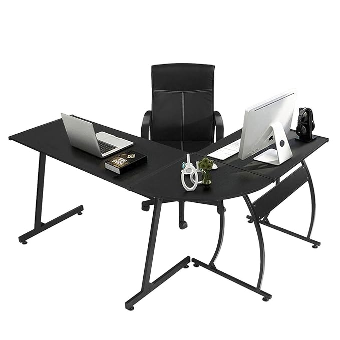 GreenForest L-Shaped Corner Desk Computer Gaming Desk PC Table,Home Office Writing Workstation 3-Piece,Black - $87.02